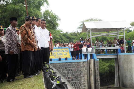 Jokowi saat meninjau normalisasi bendungan Budengan di Desa Legundi,